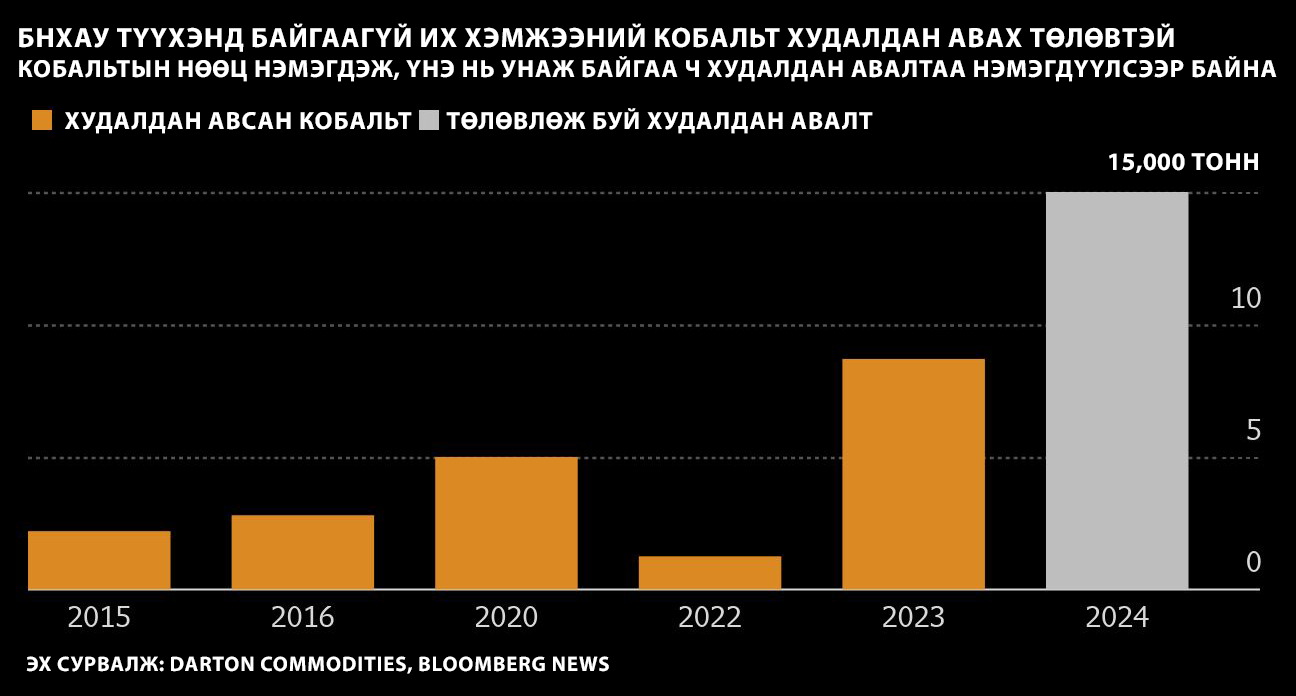 Худалдан авалт ирэх сард эхлэхээр байгаа бөгөөд нэг тонн кобальт 200-220 мянган юань байх төлөвтэй байгаа аж.