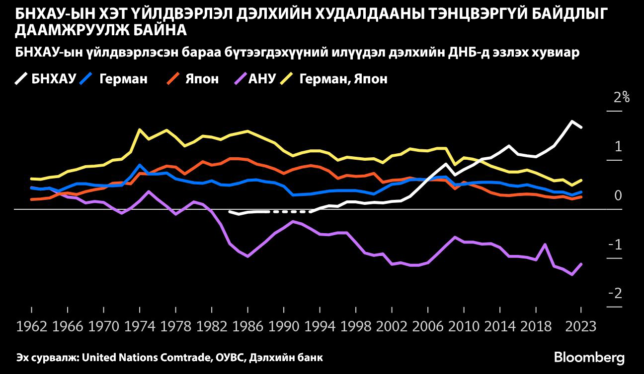БНХАУ-ын аж үйлдвэр, худалдаа шинэ дээд түвшинд хүрэх дөхсөн нь тус улсын экспорт илүү өргөн хүрээг хамарч өсөхөөр байгааг илтгэж байна. Өөрөөр хэлбэл зөвхөн цахилгаан автомашин зэрэг ногоон технологиуд бус ган болон бусад бараа, бүтээгдэхүүний экспорт нь эрчимтэй нэмэгдэхэд нөлөөлөхөөр байгаа аж.