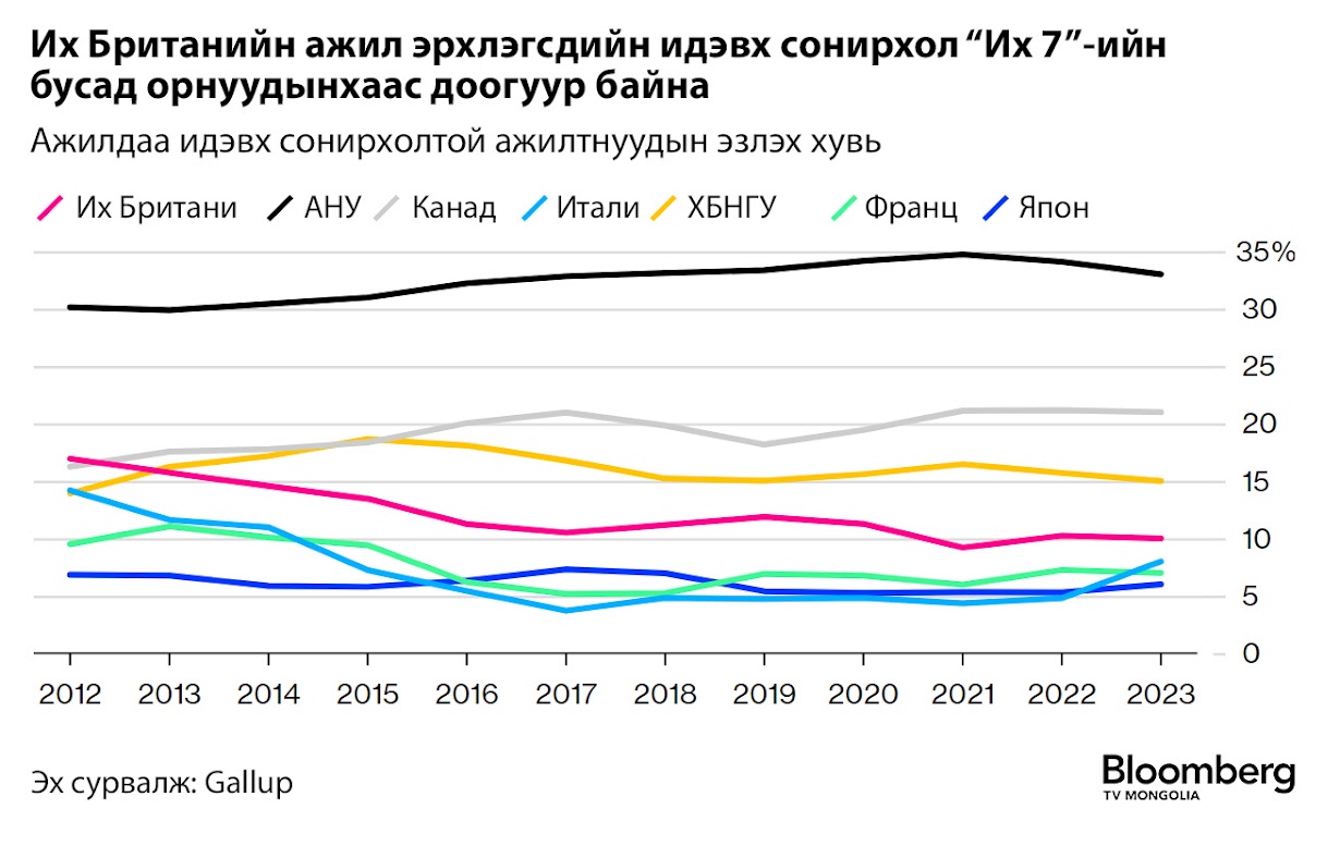 Их Британийн 10 ажил эрхлэгч тутмын ердөө нэг нь л ажлаа “идэвхтэй” хийдэг буюу өгсөн үүрэг даалгаврыг биелүүлэхээр хүчин чармайлт гаргадаг гэсэн ангилалд багтсаныг “Gallup” компанийн судалгаа харуулсан юм. Үүнд ажилтнуудын идэвх, сонирхол аажим буурах хандлагыг өнгөрсөн 10 жилийн турш судалсан байна.
