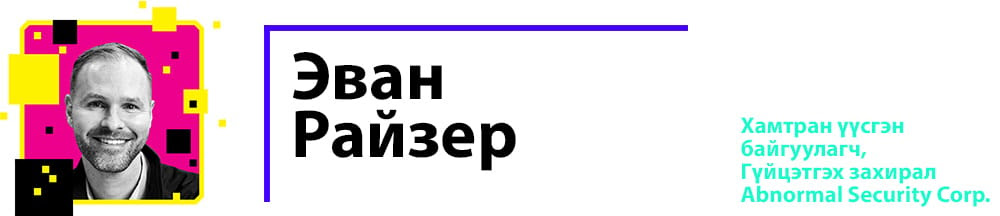 Эван Райзерын хувьд ажлын цахим шуудан дахь сонин жигтэй зүйлсийг илрүүлэхээр анх алгоритмд анхаарч эхэлснээс хойш таван жил гаруйн хугацаа өнгөрчээ. Цахим шуудан илгээгч гэнэт л яаралтай нэхэмжлэл явуулж, шавдуулаад байна уу? Шинэ хүмүүстэй холбогдож, эсвэл жирийн үед ашигладаггүй үг хэллэг анзаарагдаж байна уу? Эдгээрийн аль нь ч таныг хуурч хортой линк даруулах, мөнгийг буруу данс руу илгээх гэсэн оролдлогын илрэл байж мэднэ. Ийм оролдлогыг илрүүлсэн систем нь кибер аюулгүй байдлын хүчирхэг хэрэгслийн суурь болох боломжтой юм.